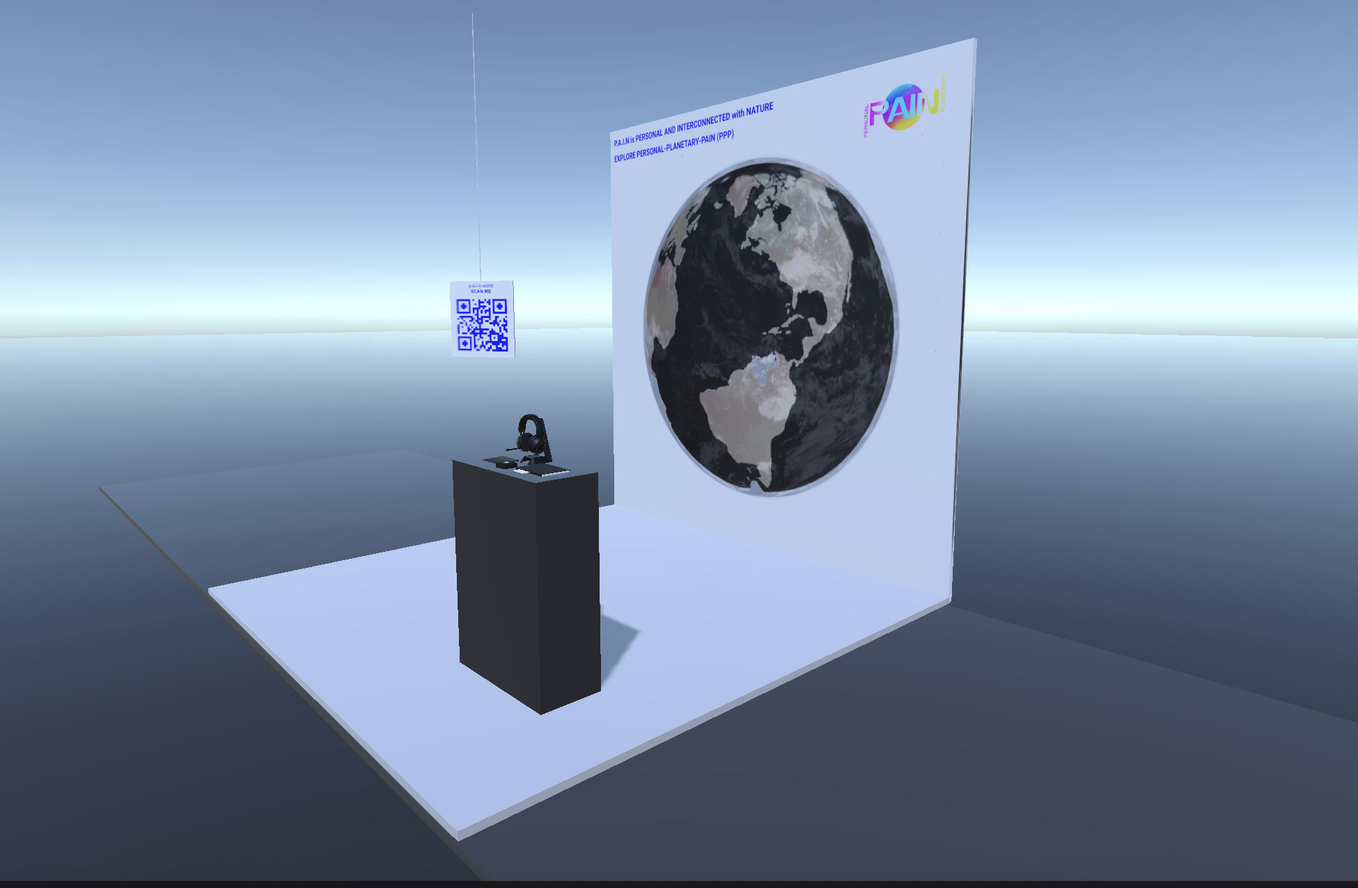 ‘’Planetary-Personal-Pain’’ (PPP) takes the form of an interactive pain map, visualizing the entanglement of ecological destruction, socio-economic fragility, and human suffering. Drawing on data from social media expressions of pain, medical health datasets, GDP statistics, and environmental records, phantom scars emerge as craters on the Earth’s surface, each sonified through the five elements of Traditional Chinese Medicine - Wood, Fire, Earth, Metal, and Water. Participants’ narratives of pain are integrated into this planetary cartography, encouraging reflection on the ongoing impact of ecological and health crises. Users share their personal narratives of pain, adding depth to the collective and lingering pain corresponding to environmental distress in different countries.