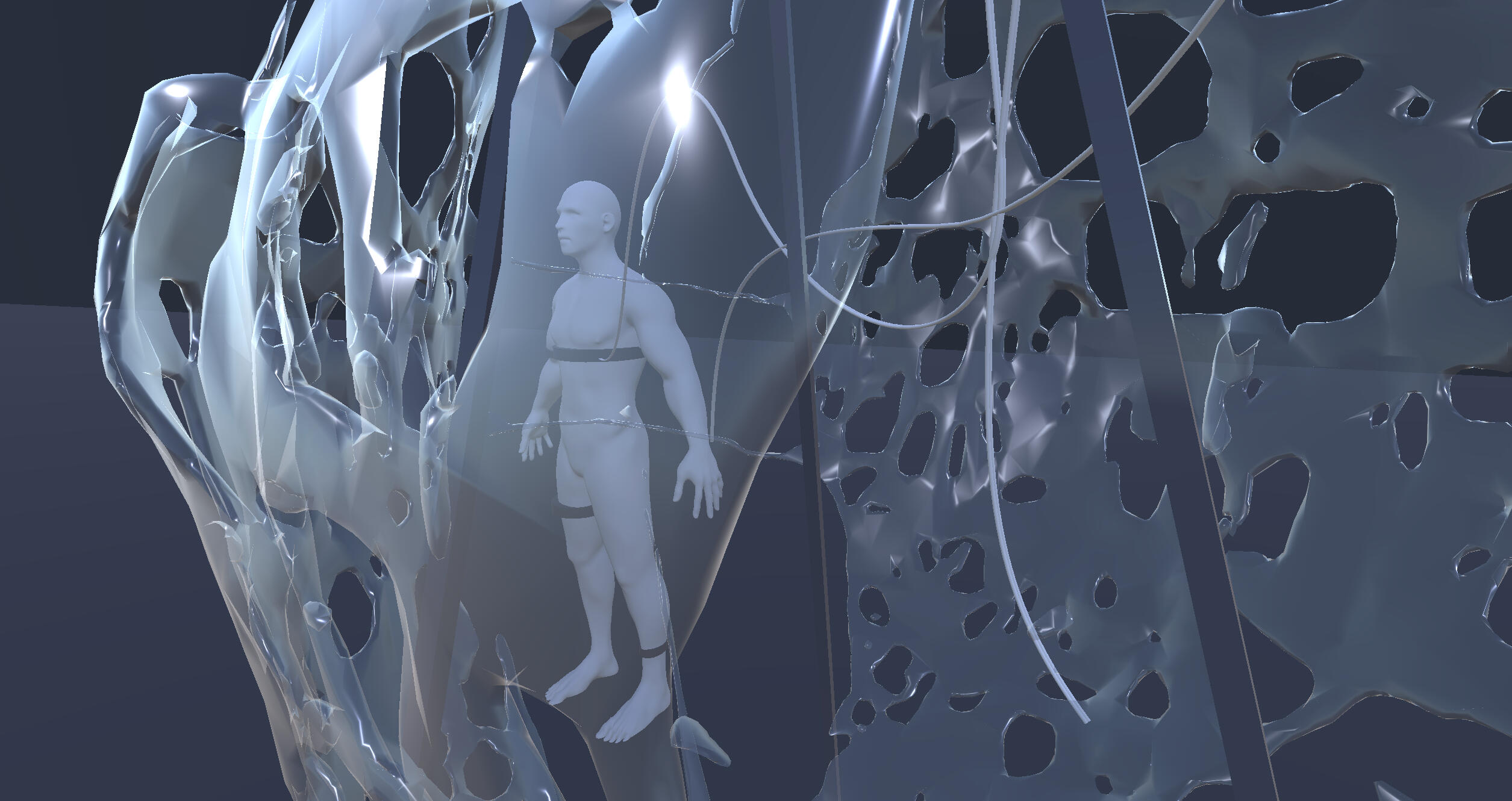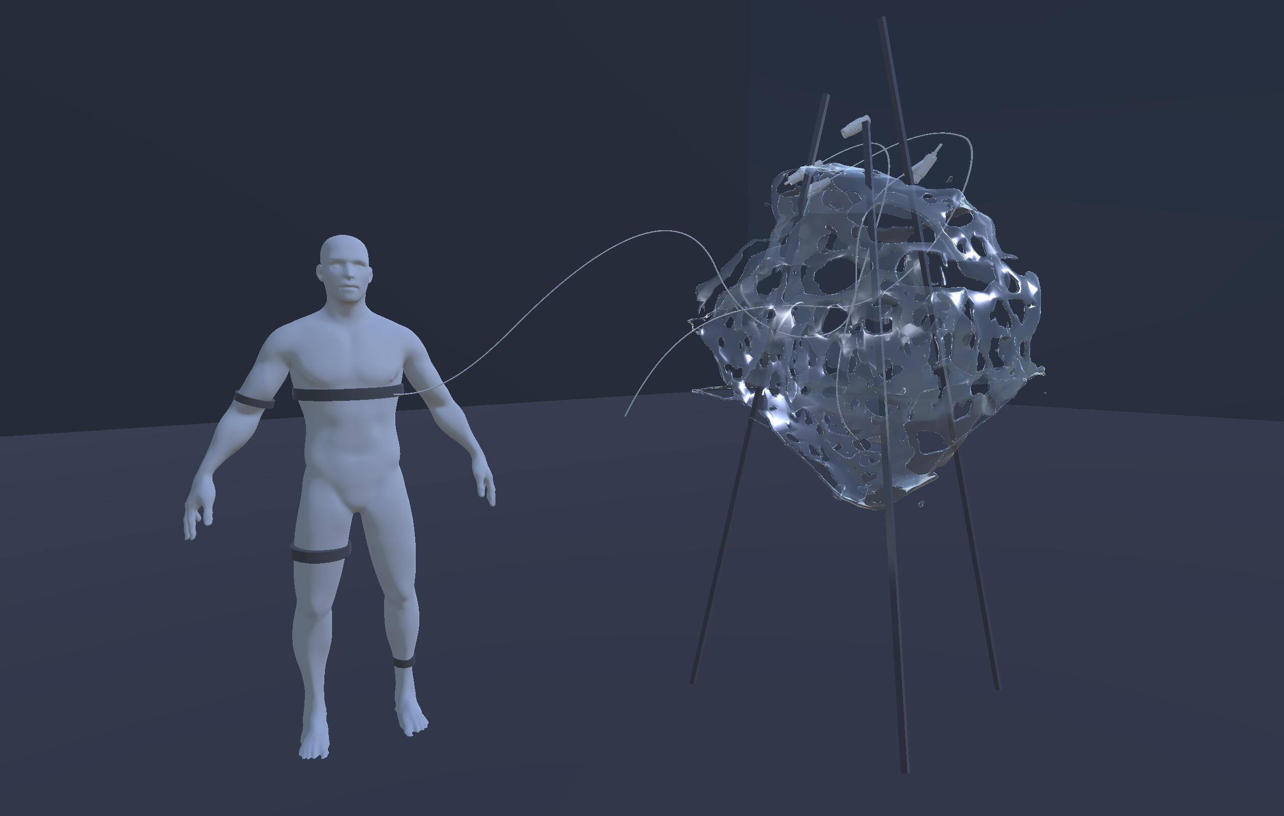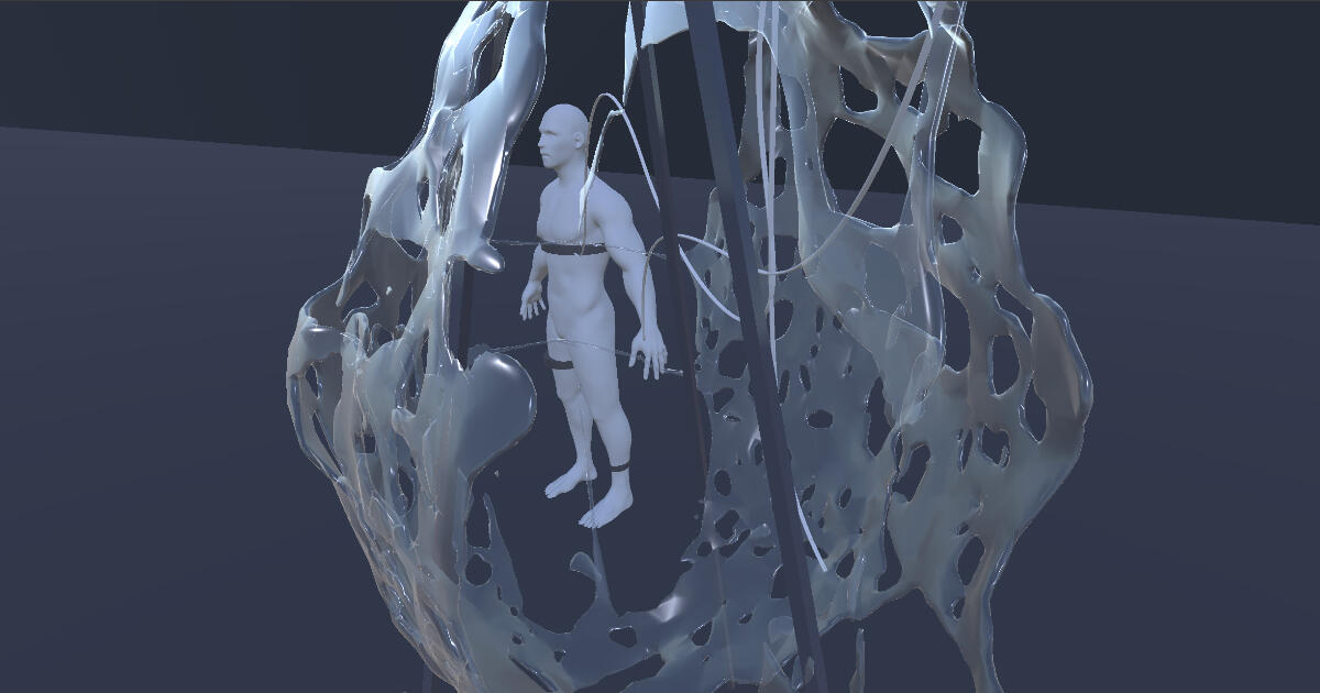The work investigates the eye as a biological interface exposed to processes of capture and computation. In 2024, a documented demonstration of security flaws in avatars within VR/MR environments raised concern, showing that even minute ocular micro-movements can be converted into exploitable cues for inference and monitoring. Positioning the body within regimes of modeling and mapping makes visible the tensions that emerge around biometric extraction, protocols of consent, and the politics of embodiment in digital systems.Within this framework, the coupling with iris motion reconfigures the avatar as a relay of transmission, where unconscious signals take on a function that exceeds mere visual depiction.